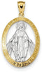 Rhodium-Plated 14k White and Yellow Gold Miraculous Medal Pendant (25.5X19MM)