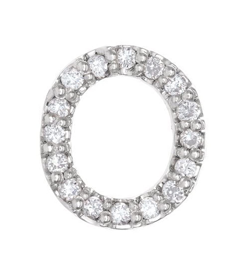 Rhodium-Plated 14k White Gold Diamond Letter 'O' Initial Stud Earring (Single Earring) (.07 Ctw, GH Color, I1 Clarity)