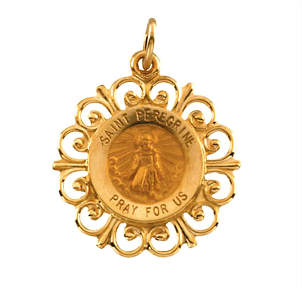 Rhodium Plated 14k Yellow Gold St. Peregrine Medal (18.5MM)