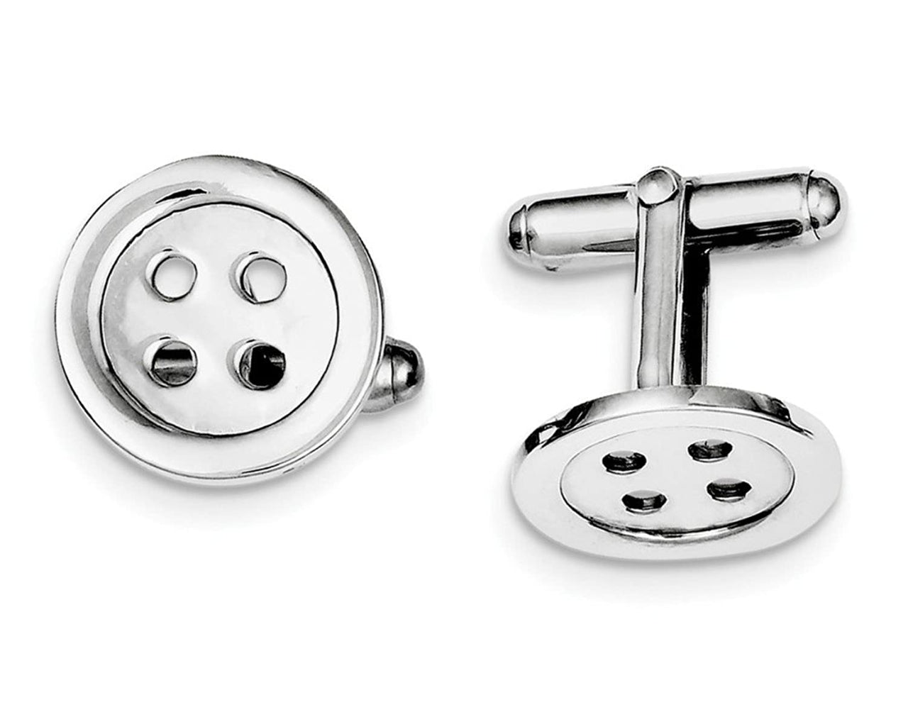 Rhodium-Plated Sterling Silver Button Cuff Links, 17MM