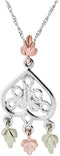 Rhodium-Plated Sterling Silver Dangle Heart and Leaf Pendant, 12k Rose and Green Gold Black Hills Gold 16 and 18 Inches