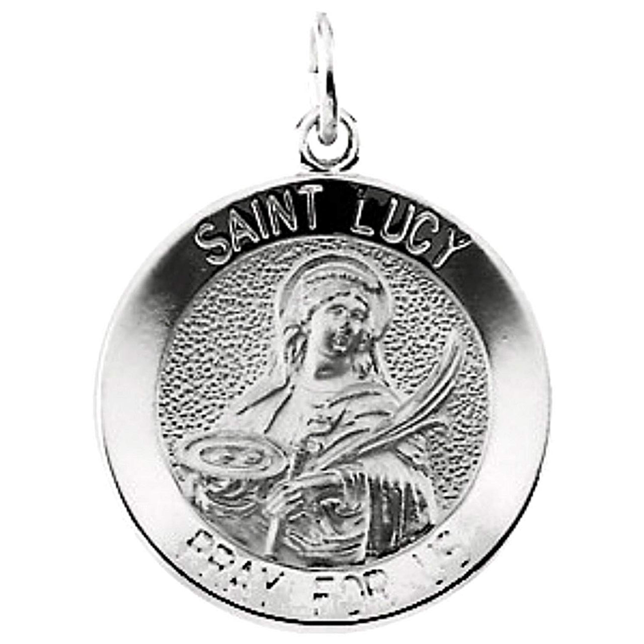 Rhodium Plated Sterling Silver Round St. Lucy Medal (14.5MM) Rhodium Plated Sterling Silver Round St. Lucy Medal (14.5MM)