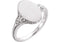 - Brushed Satin, Oval, Flat-Top Open-Back with Raised Scrollwork Defined with Recessed Bead Blast Surround and Shoulders; Open-Back Ring is Crafted in Sterling Silver