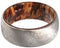 - Comfort-Fit Sindora Wood Sleeve Encircled by a Deep Frosted, Hypoallergenic Titanium Overlay; Dome Profile Band