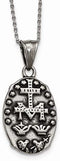 - High Polished, Antiqued, Miraculous Medal Necklace in Stainless Steel
