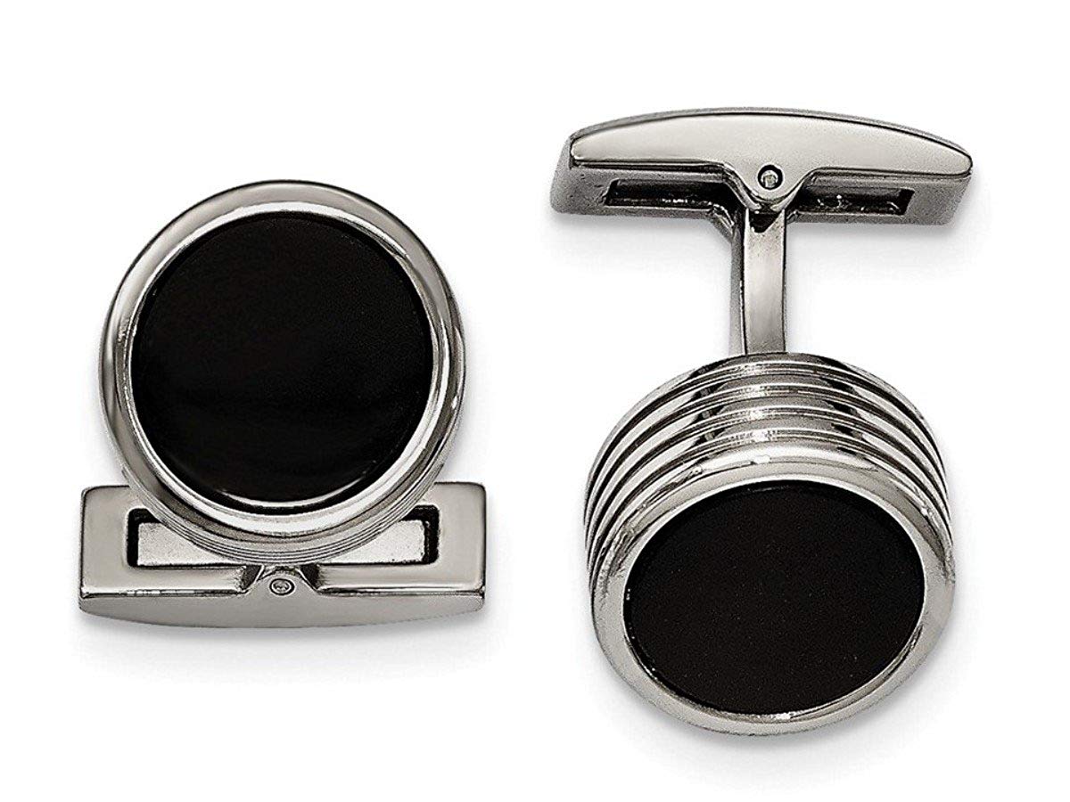 Stainless Steel Black IP- Plated Black Grooved Round Cuff Links Stainless Steel Black IP- Plated Black Grooved Round Cuff Links Stainless Steel Black IP- Plated Black Grooved Round Cuff Links Stainless Steel Black IP- Plated Black Grooved Round Cuff Links