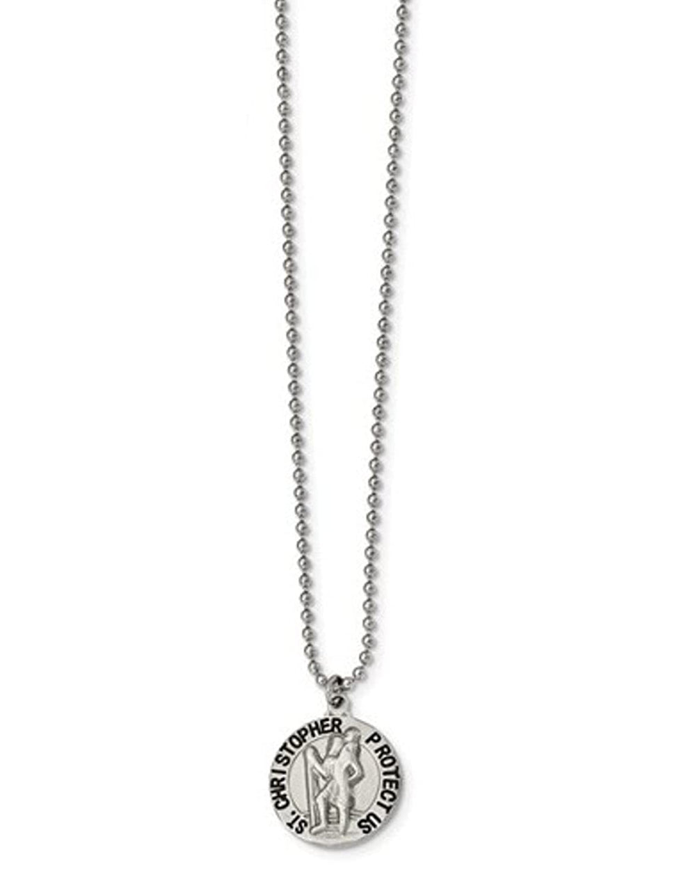 Stainless Steel Brushed And Enameled St. Christopher Medal Necklace, 22" (19.87X19.97 MM)