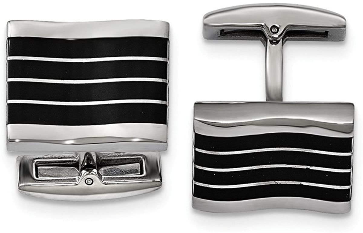 • Black Cat's Eye Rectangle Cuff Links with Three Stripes; Whale Back Cuff Links are Hand-Finished in Polished Stainless Steel