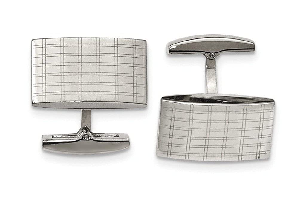 - Slightly Domed Rectangle Cuff Links with Laser Design and Whale Back Clasp; Hand-Finished in Polished Stainless Steel