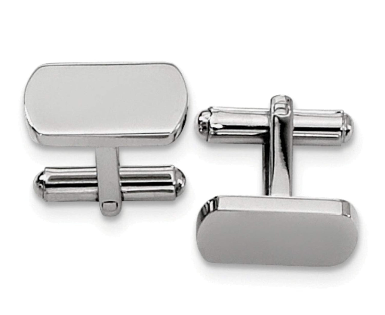 • Rounded Rectangle Cuff Links Fashioned with High Polished Edging and Bullet Back Clasps; Hand-Finished in Polished Stainless Steel