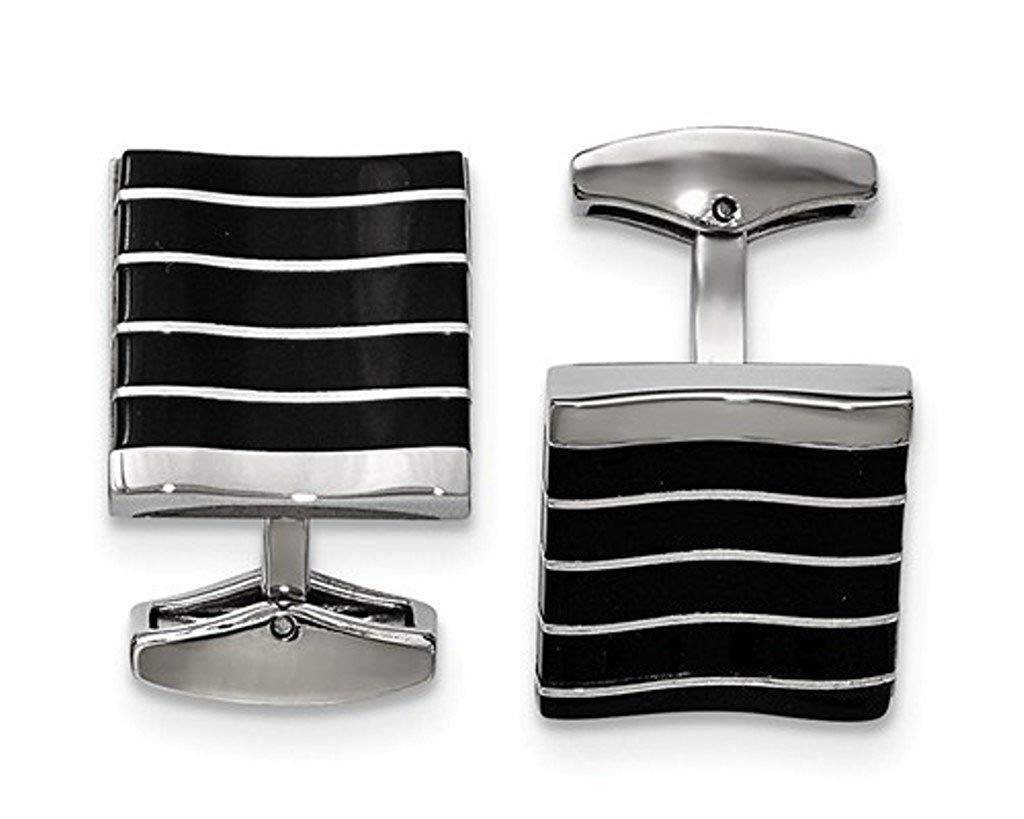 Stainless Steel, Satin Brushed Black Cat's Eye Square Cuff Links,