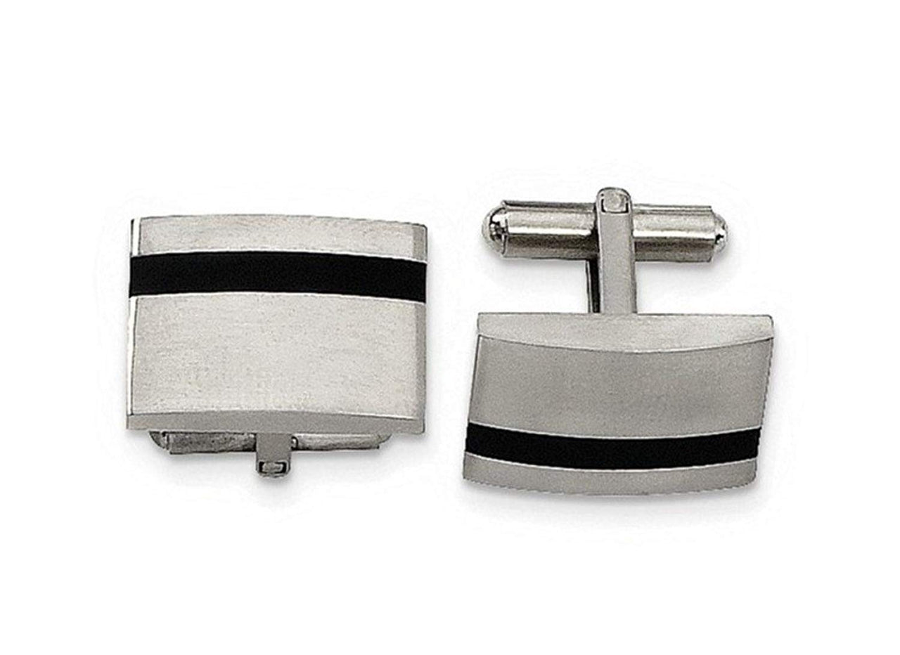 Stainless Steel Satin-Brushed Black Rubber Rectangle Cuff Links, 14X21MM