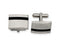 - Slightly Domed Rectangle Cuff Links with Black Rubber Stripe; Hand-Finished in Brushed Stainless Steel