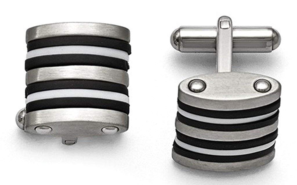 Stainless Steel, Satin Brushed Black, White Rubber Cuff Links Stainless Steel, Satin Brushed Black, White Rubber Cuff Links Stainless Steel, Satin Brushed Black, White Rubber Cuff Links