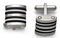• Round Cufflinks with Brushed Black and White Rubber with Bullet Back Clasp; Hand-Finished in Polished Stainless Steel