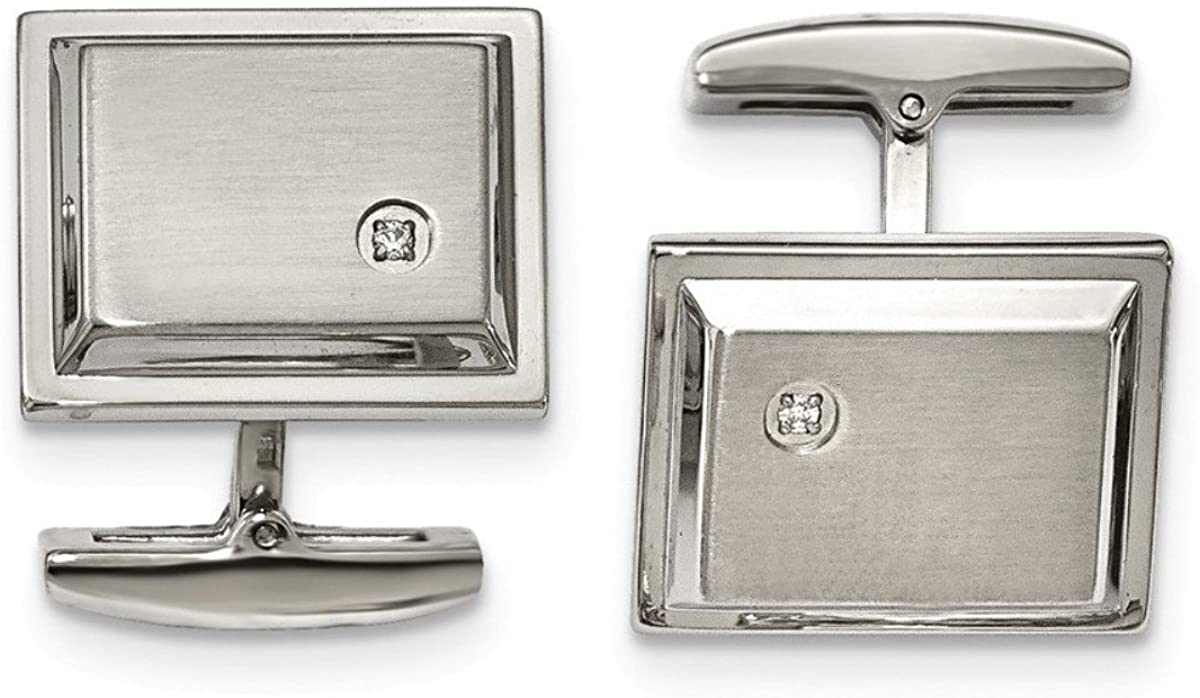 - Rectangle Cuff Links with Step Down Edge and Accented Cubic Zirconia and Whale Back Clasp; Hand-Finished in Polished and Brushed Stainless Steel