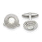 - Round Cuff Links with Mother of Pearl On-Center with Three Step Edges and Toggle Back; Hand-Finished in Polished Stainless Steel