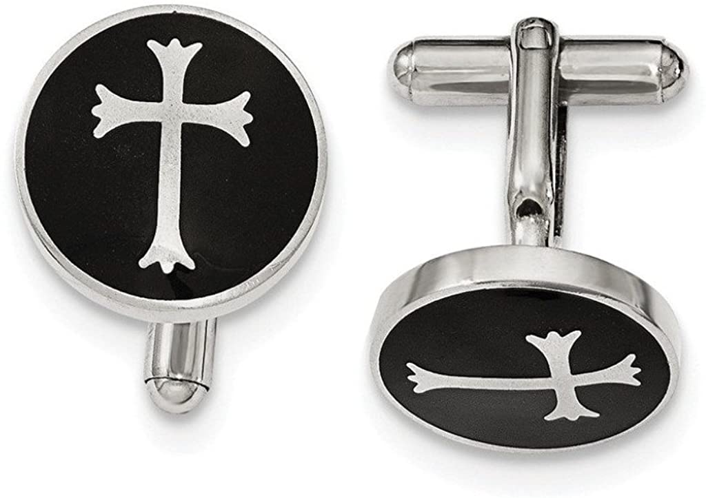 - Round Black Enameled Cross Cuff Links with Bullet Back; Hand-Finished in Polished Stainless Steel