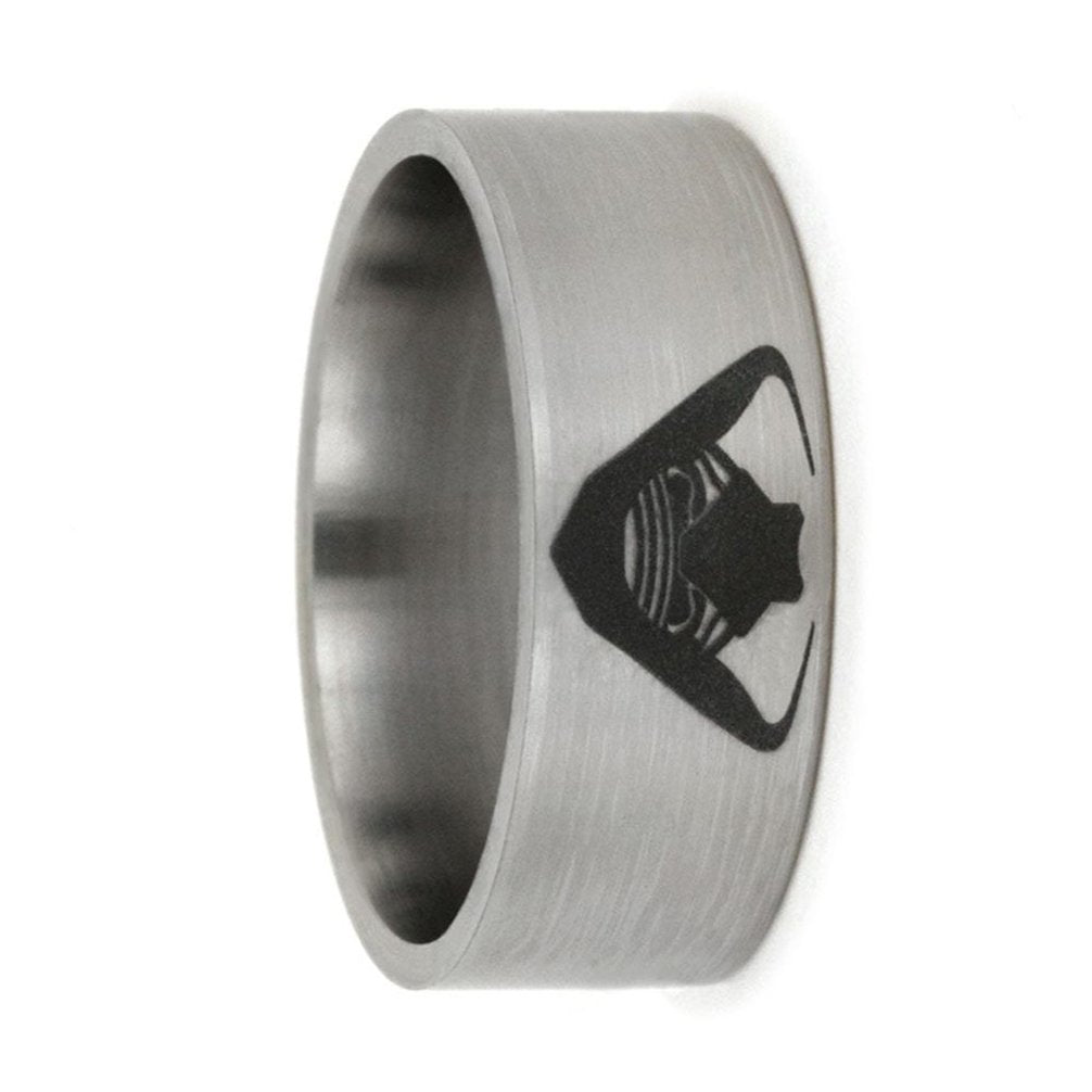 - HAND-MADE, Star Wars Inspired Ring is Crafted with Titanium with Dark Engraving Design on a Hypoallergenic, Brushed Titanium, Comfort Fit, Flat Ring