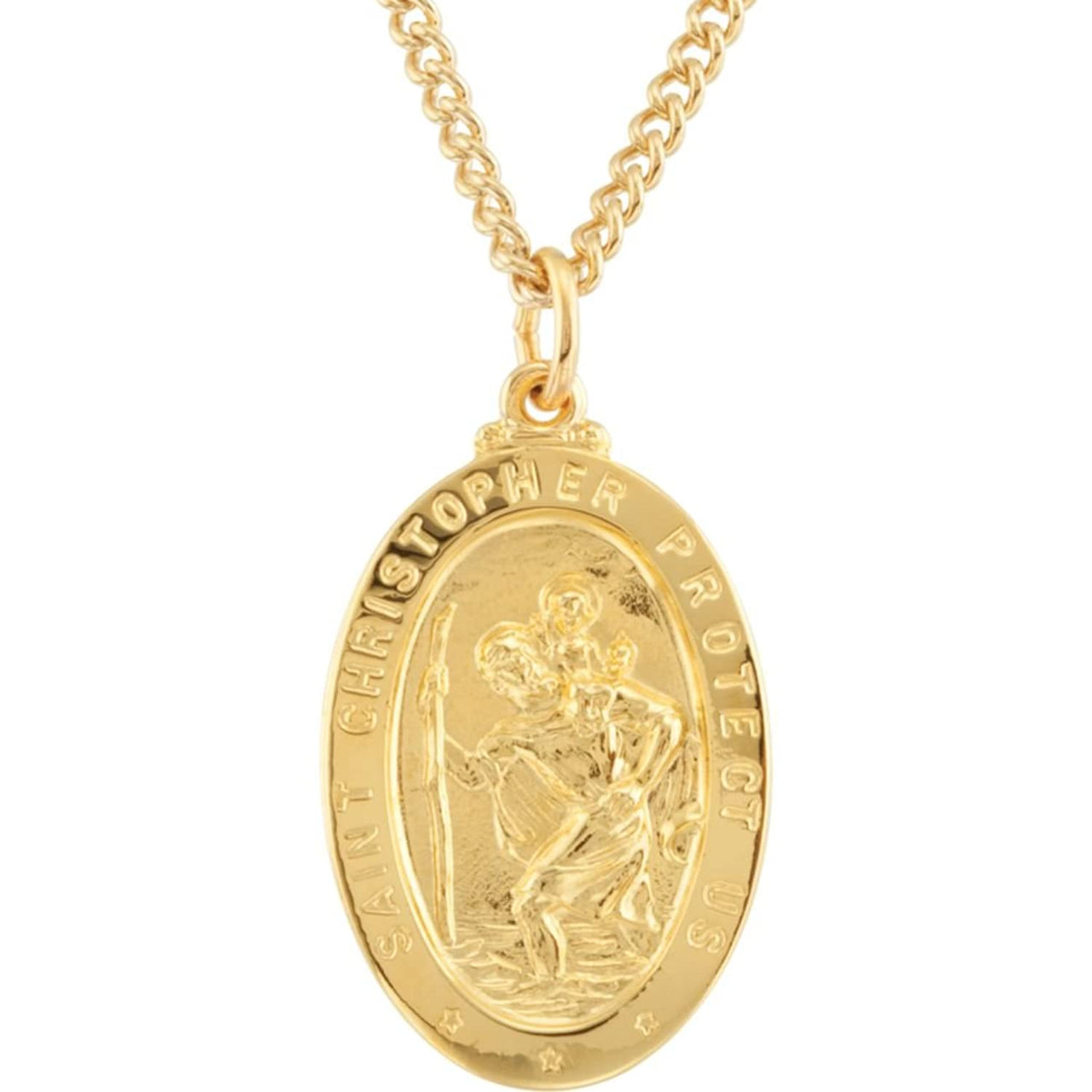 Sterling Silver 24k Gold-Plated Oval St. Christopher Medal Necklace, 24" (28.77x17.74 MM)