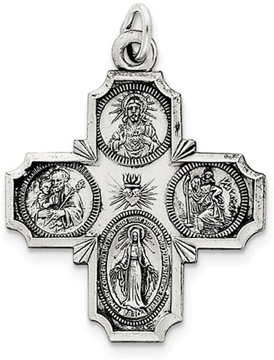 Sterling Silver Antiqued 4-Way Medal (35X30MM)