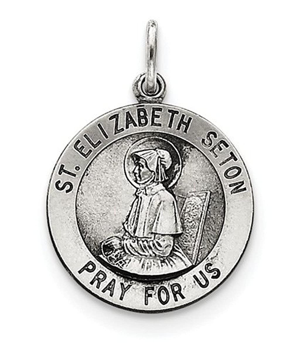 • Engraved Text 'St. Elizabeth Seton Pray For Us' Encircles the Outside of the Medal; Antique Finish; Die Struck, Medal is Crafted in Satin Sterling Silver