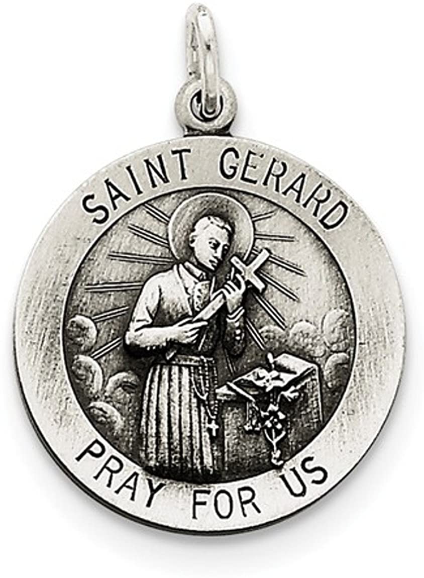 - Engraved Text 'Saint Gerard Pray For Us' Encircles the Outside of the Medal; Background with Saint is Stippled and Antiqued; Die Struck, Medal is Crafted in Satin Sterling Silver