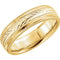 - Hand Applied Milgrain-Trim and Hand Engraved Swiss-Cut Chevron Pattern on Center Comfort Fit Band with Step-Down Edging Border; Band is Crafted in Polished 14k Yellow Gold