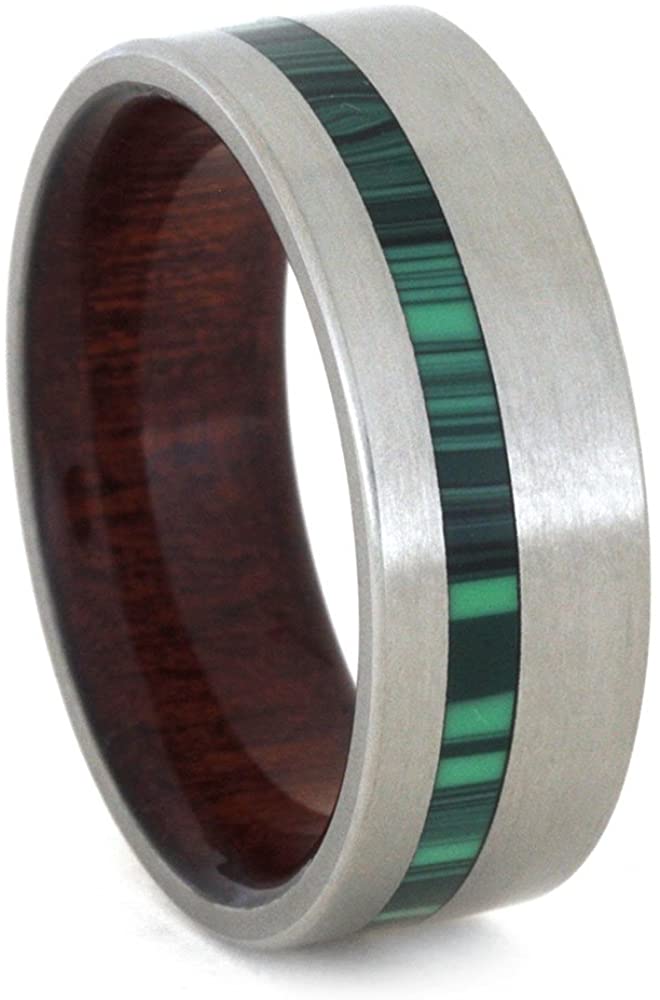 Synthetic Green Malachite, Matte Titanium 8mm Comfort-Fit Bloodwood Wedding Band, Size 7.5