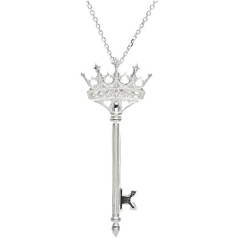 - Gleaming Diamond Encrusted Crown Key Pendant is Crafted in Polished Sterling Silver