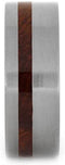- Exotic, Non-Jointed, Peek-a-Boo Pinstripe of Amboyna Burl Wood Contrasted with Matte Titanium on a Flat-Profile, Comfort-Fit Band is Crafted in Hypoallergenic Titanium