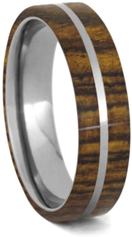 The Men's Jewelry Store (Unisex Jewelry) Bocote Wood Inlay 6mm Comfort-Fit Brushed Titanium Wedding Band, Size 12