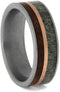 - Non-Jointed Deer Antler, Koa Wood with 14k Rose Gold and Titanium Pinstripes Overlays on a Hypoallergenic, Comfort-Fit, Flat-Profile, Matte Titanium Wedding Band