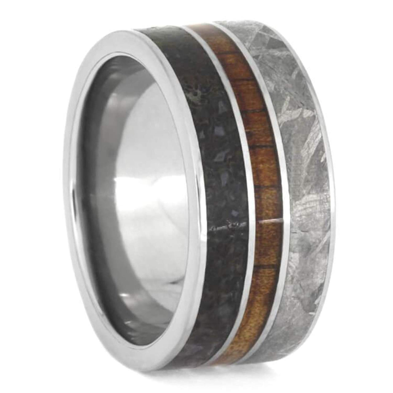 The Men's Jewelry Store (Unisex Jewelry) Dinosaur Bone, Gibeon Meteorite, Koa Wood 10mm Titanium Comfort-Fit Wedding Band