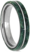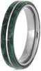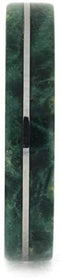 - Flat-Profile, Comfort-Fit, Narrow Green Box Elder Burl with Center Titanium Pinstripe on a Hypoallergenic, Titanium Wedding Band