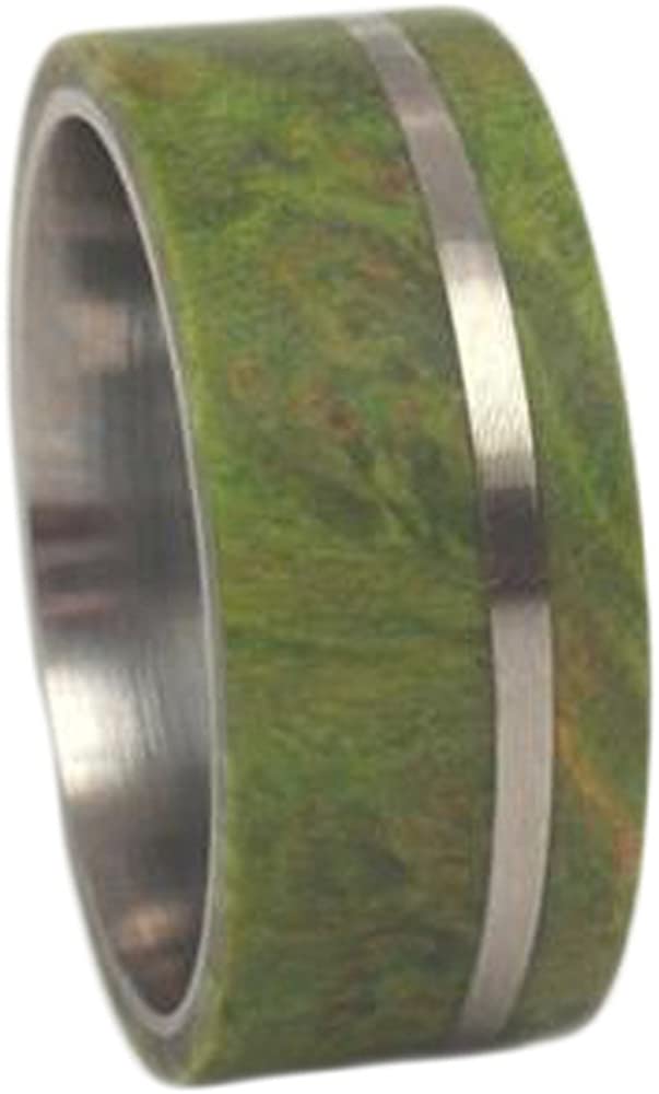 - Comfort-Fit Band is 8.00 Millimeters Wide; Left to Right Measurements are: 5.00 Millimeters Green Box Elder Burl, 1.00 Millimeters Titanium, 2.00 Millimeters Green Box Elder Burl