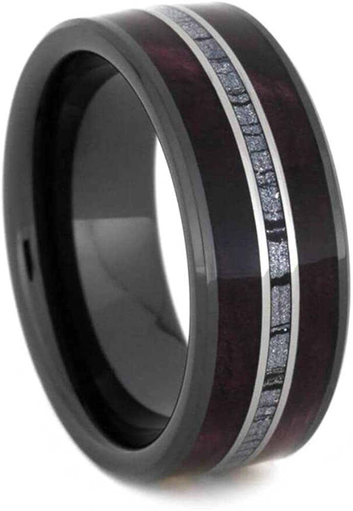The Men's Jewelry Store (Unisex Jewelry) Purple Box Elder Burl, Cobaltium Mokume, Titanium 8mm Comfort-Fit Black Ceramic Sleeve Band, Size 15.75