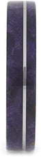 • Exotic, Non-Jointed Purple Box Elder Burl Wood Overlaid with Stripe of Smooth Titanium on a Flat-Profile, Comfort Fit Band is Crafted in Hypoallergenic, Titanium
