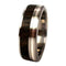 - Comfort-Fit, Titanium Sleeve Enveloped by a Bright Polished, Hypoallergenic Ziricote Wood Inlay with 10k White Gold Pinstripe; Flat Profile Band