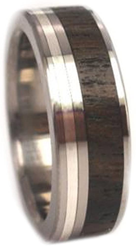 The Men's Jewelry Store (Unisex Jewelry) Ziricote Wood, 14K White Gold 7mm Comfort Fit Titanium Wedding Band, Size 5.75