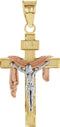 - Beautiful Shroud Crucifix Features a Matte-Finished, Yellow Cross with Polished Border and a Polished White Corpus; All are Separate Pieces, Giving a Striking 3-D Effect; The inscription 'INRI' Adorns the Top. A Rose Gold Shroud Drapes across the Arms; Fashioned with a Solid, Textured Back; Pendant is Crafted in Polished Rhodium-Plated 14k Yellow, White and Rose Gold