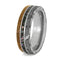 - Comfort-Fit, Non-Jointed Seymchan Meteorite, Crushed Abalone, Whiskey Barrel Oak Wood with Titanium Pinstripe Overlay on a Hypoallergenic, Flat-Profile, Titanium Wedding Band
