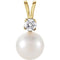 White Akoya Cultured Pearl and Diamond Pendant, 14k Yellow Gold, (6MM) (.02 Ct, Color G-H, Clarity I1)