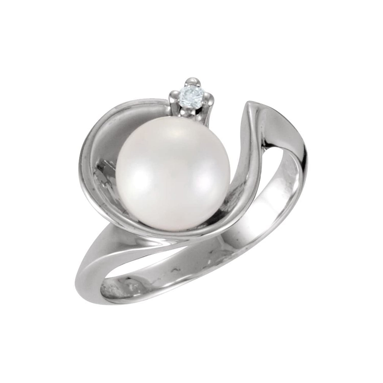 - Akoya Cultured Pearl Wrapped in High-Polished White Gold with Hand-Set Diamond; Ring is Crafted in Rhodium-Plated 14k White Gold