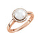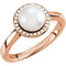 - Freshwater Cultured Pearl On-Center Surrounded with Two6 Hand-Set Diamonds with High Polished Halo Ring; Crafted in 14k Rose Gold
