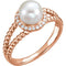 White Freshwater Cultured Pearl Diamond Halo 14k Rose Gold Ring (7-7.5 MM) (1/8 Ctw, Color G-H, Clarity I1)