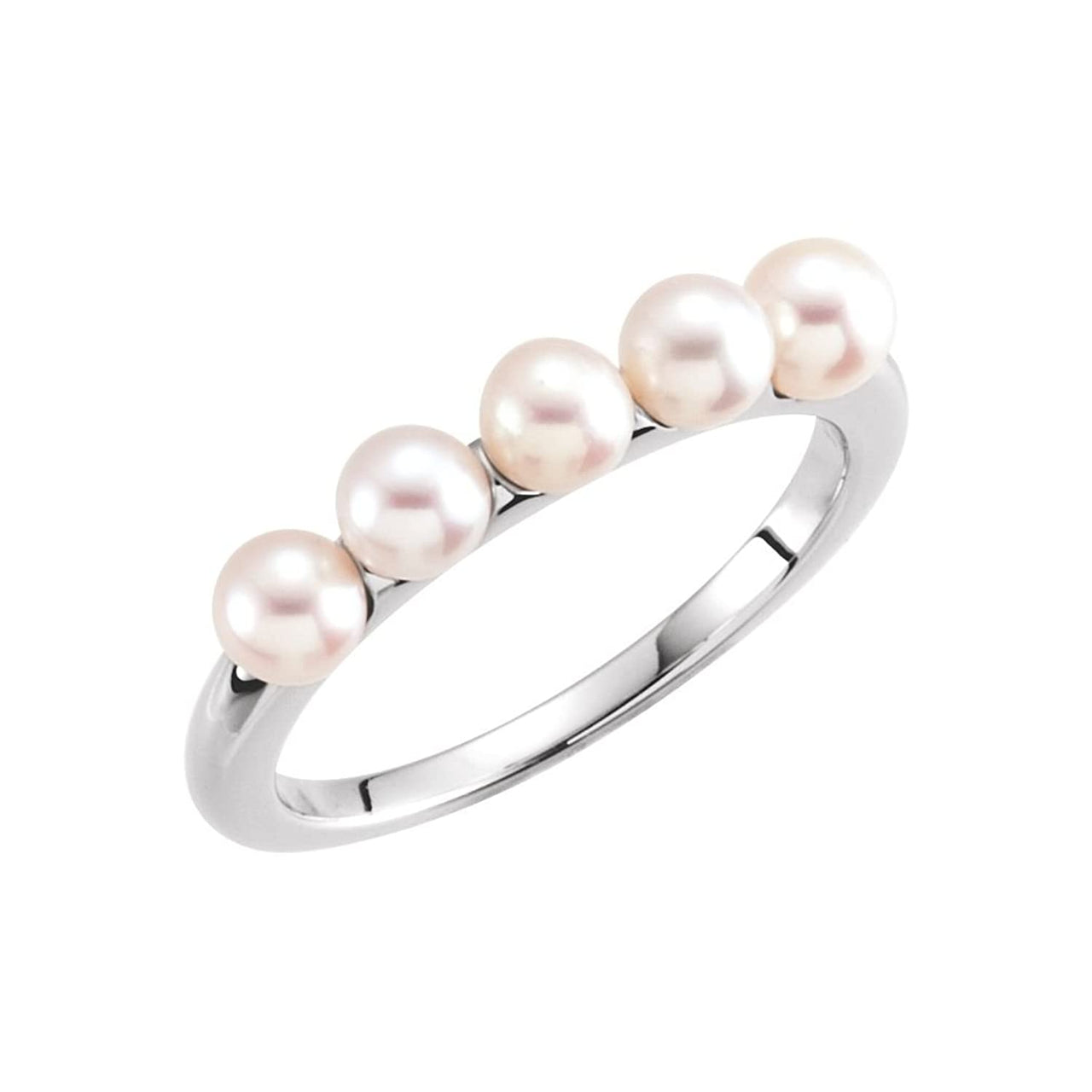 White Freshwater Cultured Pearl Five-Stone Ring, Rhodium-Plated 14k White Gold (4-4.5mm) Size 7