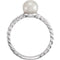 • Rope-Trim Slim-Profile Ring Encrusted with White Freshwater Cultured Pearl On-Center; Crafted in Polished Rhodium-Plated 14k White Gold
