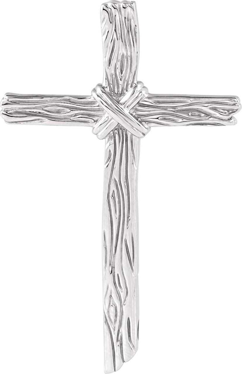 Woodgrain Cross Brushed Sterling Silver Pendant (50.75X32.25MM)