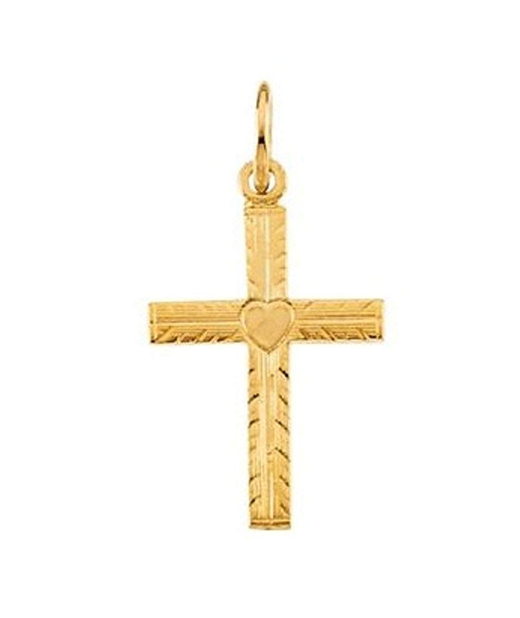 - Engraved Heart On-Center Features Diamond-Cut s on all Sides of Cross; Pendant is Crafted in Polished 14k Yellow Gold
